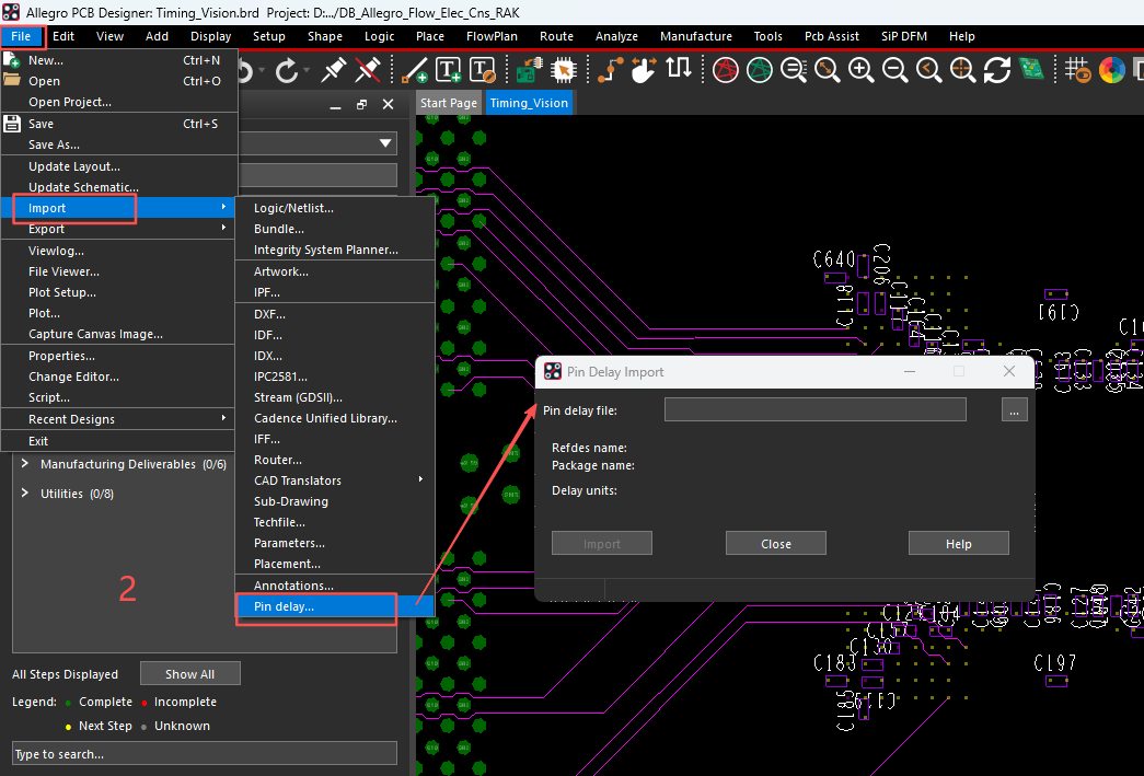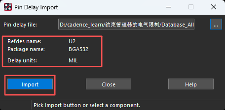 2.选择菜单栏的File-Import-Pin Delay。打开Pin Delay Import界面。