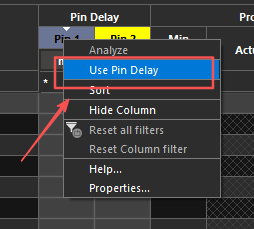 7.接着使用引脚延迟,点击引脚延迟数值107mil,再Pin1显示的颜色变为灰色时,鼠标右键点击Pin1选择Use Pin Delay,将引脚延迟也添加到传播延迟中。