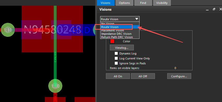 3.在Vision窗口界面下拉选择Route Vision,启用布线配置。