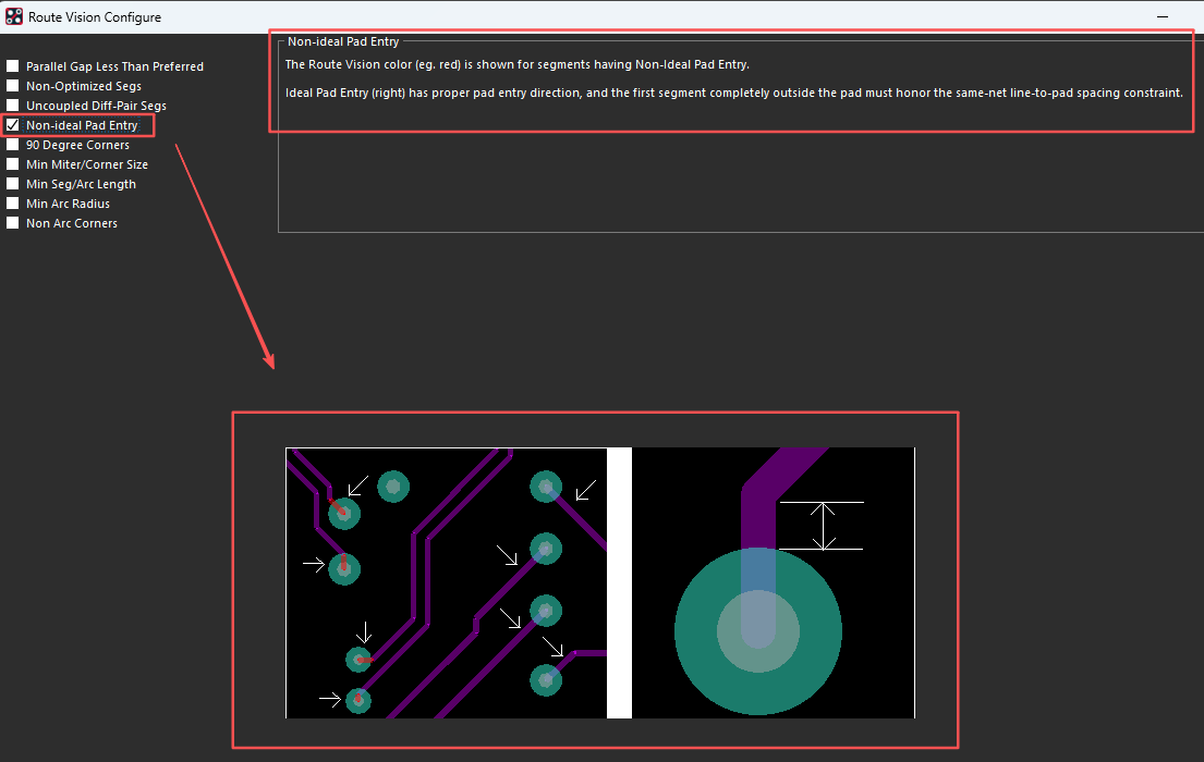 3.Non-ideal Pad Entry:检查同一网线与引脚之间的间距,以确保在转弯前各段能正确地从引脚处伸出。