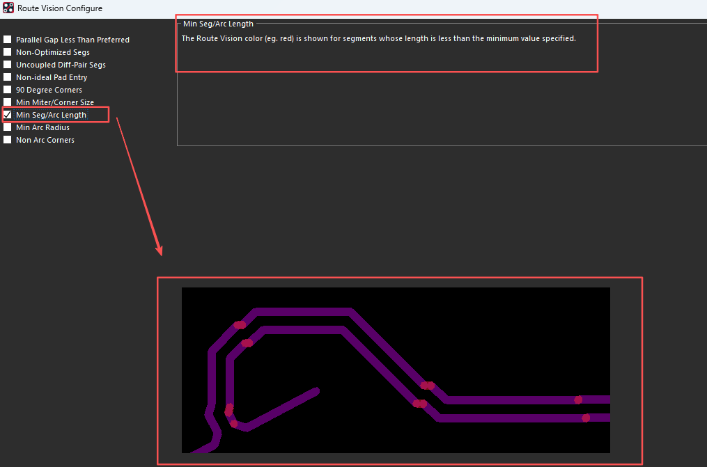 6.Min Seg/Arc Length:突出显示低于设定参数的分段或弧形部分。