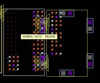 2.点击Find界面,仅勾选“Symbols”,选择一个BGA符号右键done,这样该BGA就成功扇出孔。
