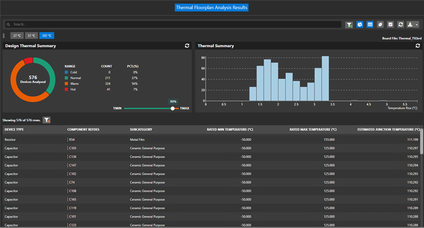 分析结束后,您可以将易快速失效的器件替换为更稳固的型号,优化原理图,随后重新运行检查,确保 PCB 能够达到您所期望的使用年限。