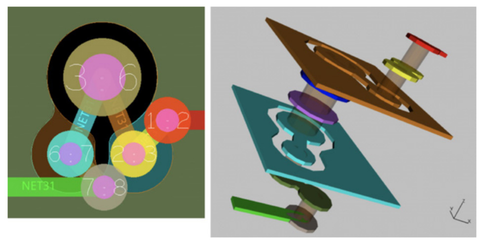 图 6:以约束为驱动的高密度互连(HDI)设计,能让设计人员快速实现并更新重复 性的复杂过孔结构(包括回流路径过孔),适用于引出布线和层间过渡场景。