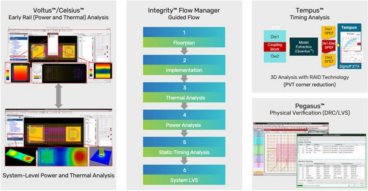 最终,设计人员需要一个能够将所有必需功能整合到单一设计平台中的解决方案。一个成功的三维 集成电路(3D-IC)设计环境需预先捕捉顶层设计意图,支持通过早期功耗 / 热分析估算实现抽象化设 计,并通过实现、提取、时序收敛、测试、分析及封装等环节达成设计收敛。