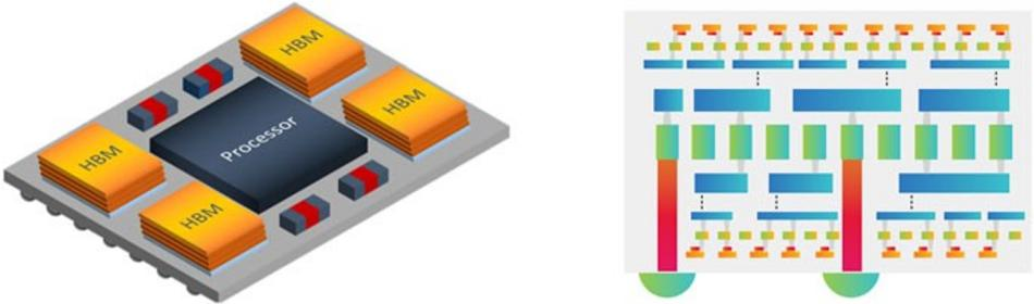 图 3:典型的硅中介层设计(左)与三维集成电路(3D-IC)或三维集成示例(右)